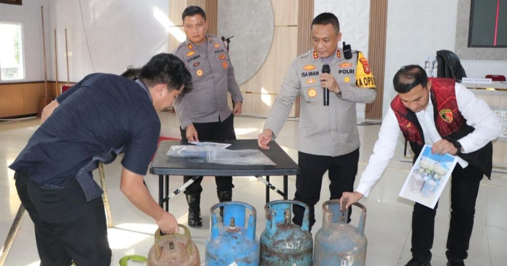 Dalam kasus tersebut, polisi mengamankan tiga orang tersangka berinisial ASY, AS, dan IEBN. Ketiganya diduga terlibat dalam kegiatan penyuntikan atau pemindahan isi gas LPG 3 kilogram bersubsidi ke tabung LPG 12 kilogram non subsidi,” terang Kapolres.