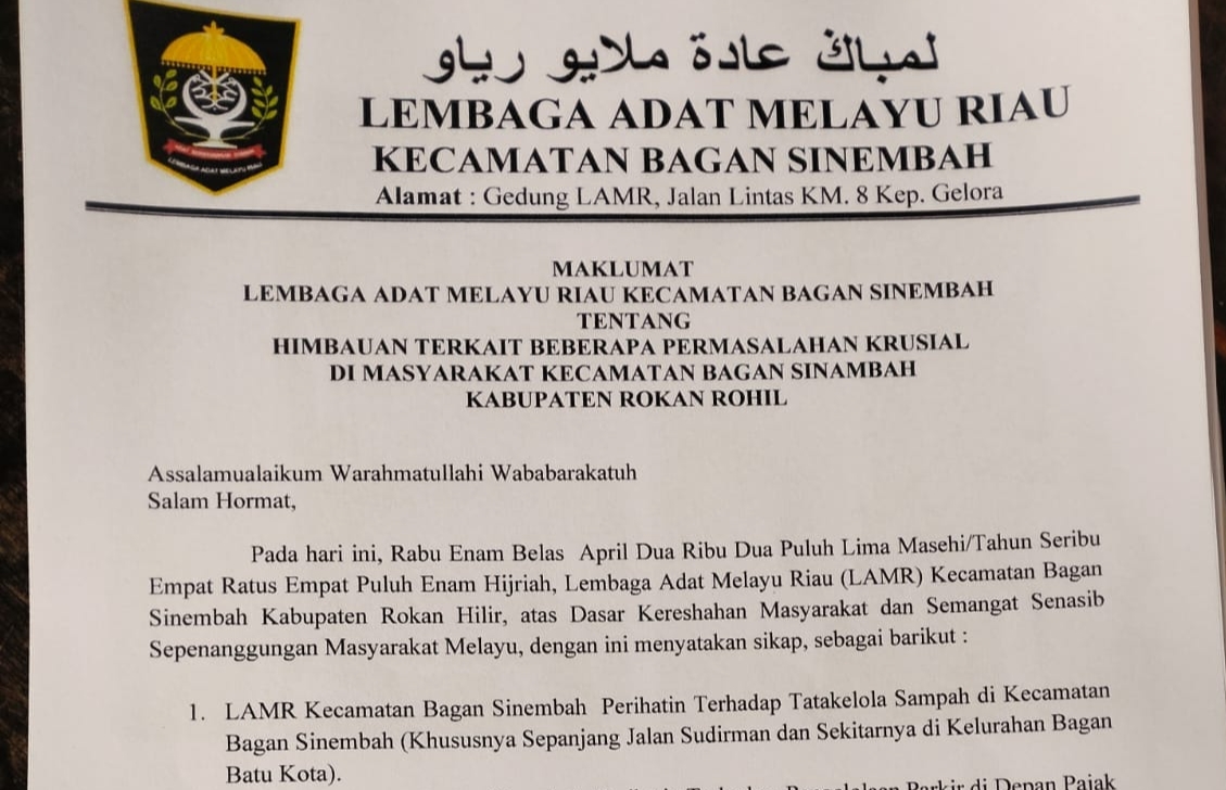 Menanggapi permasalahan tersebut, LAMR Lembaga Adat Melayu Riau Kecamatan Bagan Sinembah memberikan 4 poin maklumat kepada pihak terkait atau pengelola, untuk dapat menyelesaikan atau menertibkan masalah tersebut. Minggu 20/04/2025.