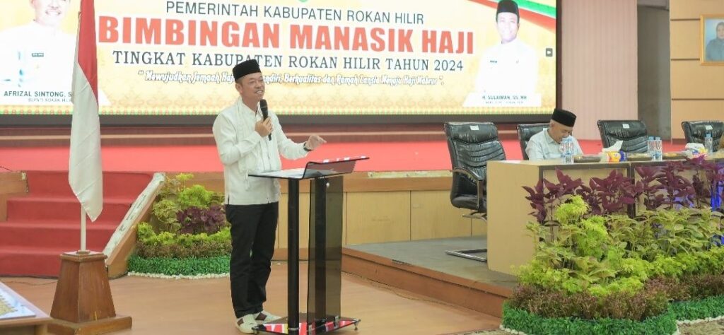 ROHIL, Tepakonline.com- Bupati Rokan Hilir (Rohil) Afrizal Sintong SIP secara langsung membuka bimbingan manasik haji tingkat Kabupaten yang dipusatkan di Gedung Misran Rais, Bagansiapiapi, Senin (6/5/2024).