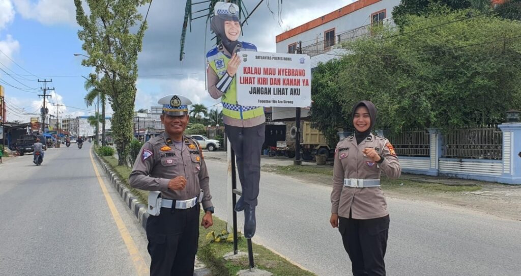 Agar Tertib dan Lancar Satlantas Polres Rohil Pasang Standing People Pesan Keselamatan