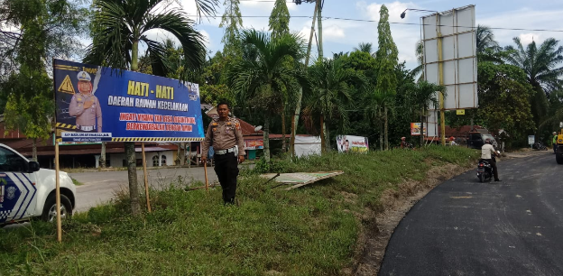 ROHIL- Agar aman dan lancar bagi pengguna jalan, kembali Satgas Kamsebtibcar Satlantas Polres Rohil melaksanakan kegiatan pemasangan Spanduk himbauan Rawan Banjir di wilayah hukum Polres Rokan Hilir.