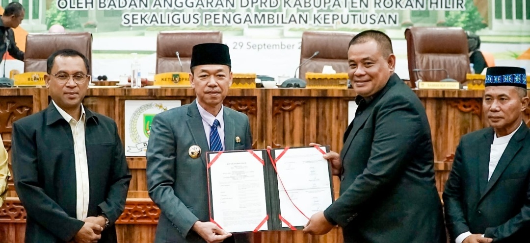 Atas rancangan Perda perubaha APBD Kabupaten Rokan Hilir tanun anggaran 2023 oleh Badan Anggaran DPRD Rohil sekaligus pengambilan keputusan penetapan APBD Perubahan, Jumat (29/9/2023) malam.