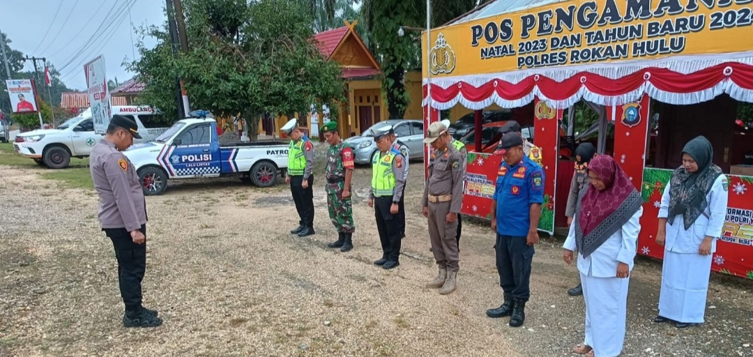 ROHUL, Tepakonline.com– Dalam Ops Lilin Lancang Kuning (LK) pengamanan Mudik Natal dan Tahun Baru (Nataru) 2023-2024, Ka Pos PAM Sungai Kumango Polres Rokan Hulu (Rohul) Ipda Rahmat Sandra SH MH memimpin giat apel Pagi dan pengaturan LaluLintas, Jum’at (29/12/2023).