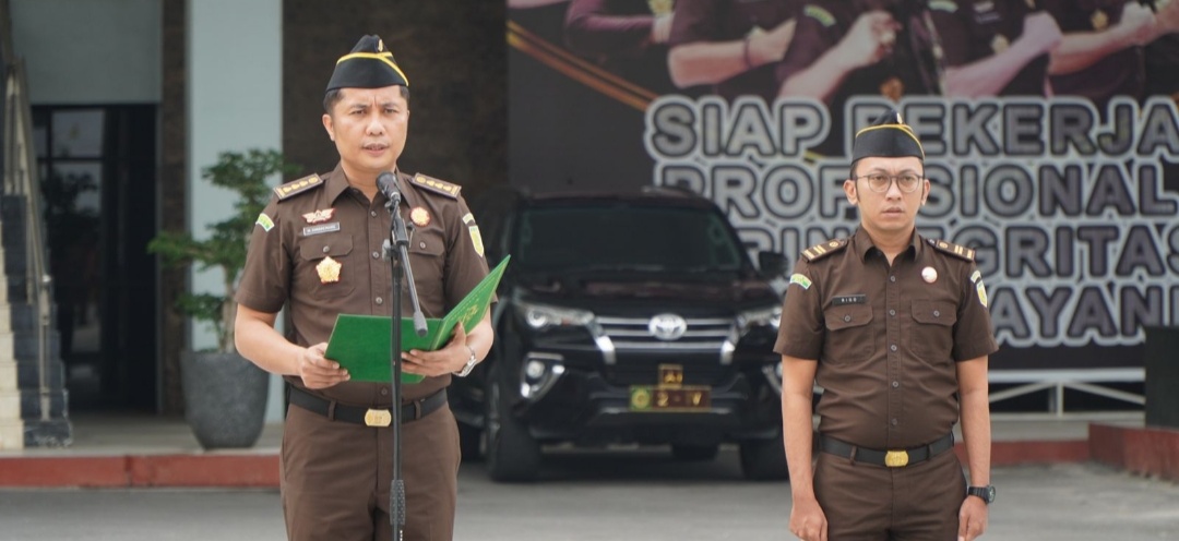 PEKANBARU, Tepakonline.com- Asisten Intelijen Kejaksaan Tinggi Riau Marcos M. M. Simaremare, S.H., M. Hum selaku Penerima Apel Kerja Pagi.