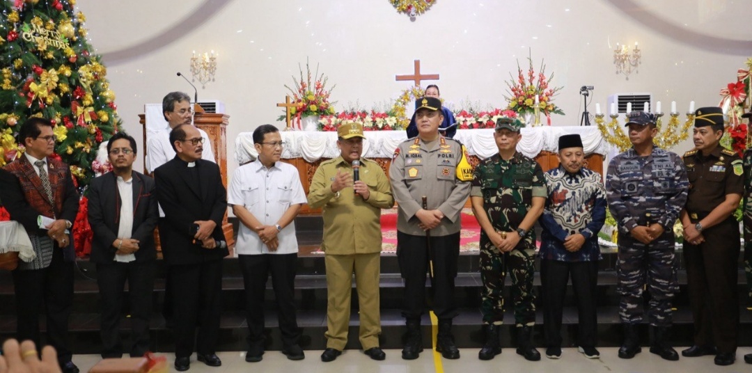 PEKANBARU, Tepakonline.com- Asisten Pidana Militer Kejaksaan Tinggi Riau Kolonel Laut (H) Faisol, S.H bersama Forkopimda Provinsi mengikuti kegiatan Peninjauan Lapangan terkait Persiapan Perayaan Natal dan Peninjauan Posko Pengamanan Natal dan Tahun Baru 2024 di gereja HKBP.