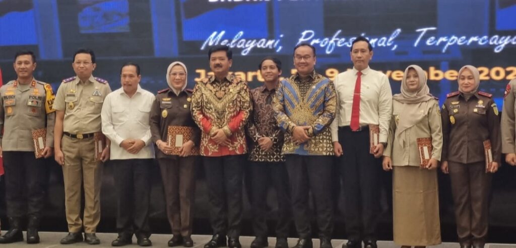 Pemberian penghargaan skala nasional berupa pin emas ini langsung diberikan oleh Menteri ATR/BPN Hadi Tjahyanto kepada Kejati Jambi yang diwakili oleh Wakil Kepala Kejaksaan Tinggi Jambi Enen Saribanon.