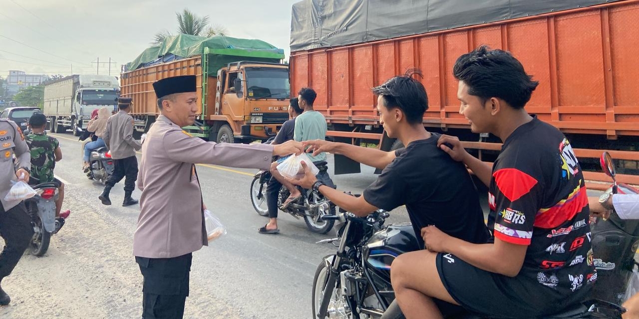 Tepakonline.com, ROHIL- Mewakili Kapolres Rohil AKBP Isa Imam Syahroni, S.I.K M.H, Sejumlah PJU Polres Rohil melaksanakan kegiatan pembagian takjil gratis kepada masyarakat didepan Mako Polsek Tanah Putih di Jl. lintas Riau – Sumut di Kepenghuluan Ujung Tanjung. Minggu 09 Maret 2025 Pukul 17.00 WIB.