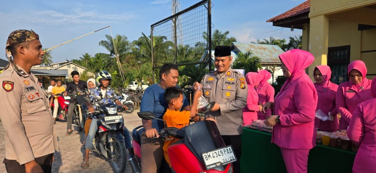 Pembagian Takjil kepada Masyarakat oleh jajaran Polres Rohil di Polsek Pujud.