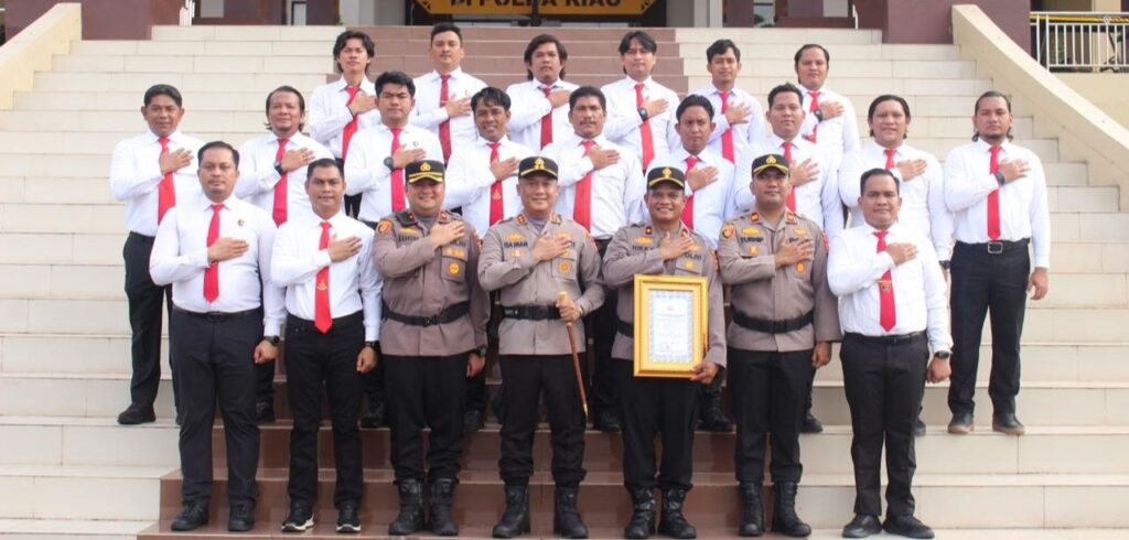 Tepakonline.com, PEKANBARU- Kapolres Rokan Hilir AKBP ISA IMAM SYAHRONI, S.I.K., M.H. bersama Wakapolres Rokan Hilir KOMPOL RIKKY OPERIADY, S.Sos., S.I.K., M.I.K dan personel Polres Rokan Hilir menerima penghargaan dari Kapolda Riau atas keberhasilan dalam mengungkap kasus peredaran narkotika jenis sabu dengan barang bukti seberat 80 kilogram.