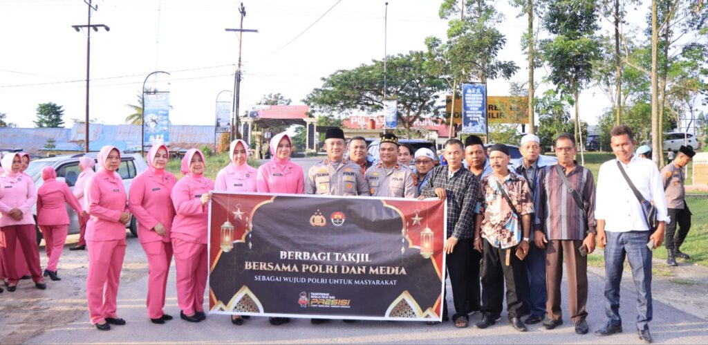 Berkah Ramadhan Kapolres Rohil Bersama Insan Pers Bagikan Takjil Gratis ke Warga