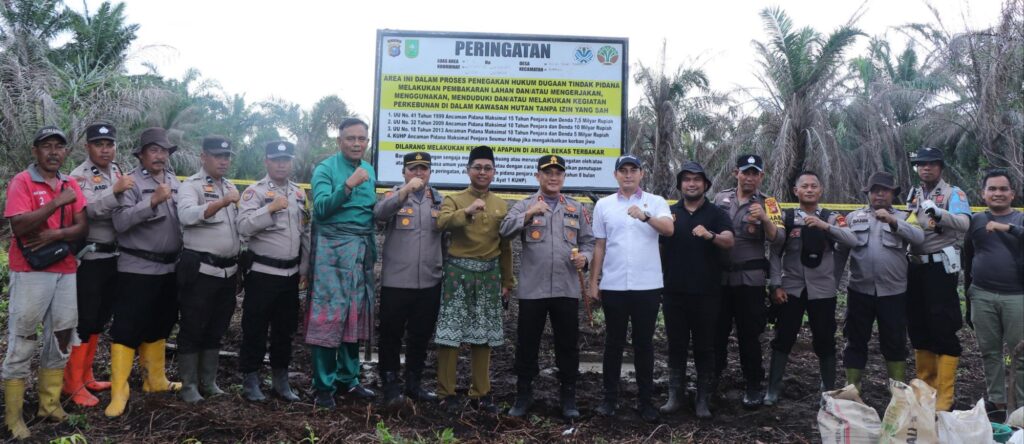 Tepakonline.com, ROHIL- Kapolres Rohil AKBP Isa Imam Syahroni bersama Wabup Rohil Jhony Charles BBA MBA laksanakan kegiatan pemasangan Plang Larangan Melakukan Kegiatan dan Aktifitas Apapun di Lahan Bekas Karlahut dengan titik koordinat N:2.75311,E:100.533134.