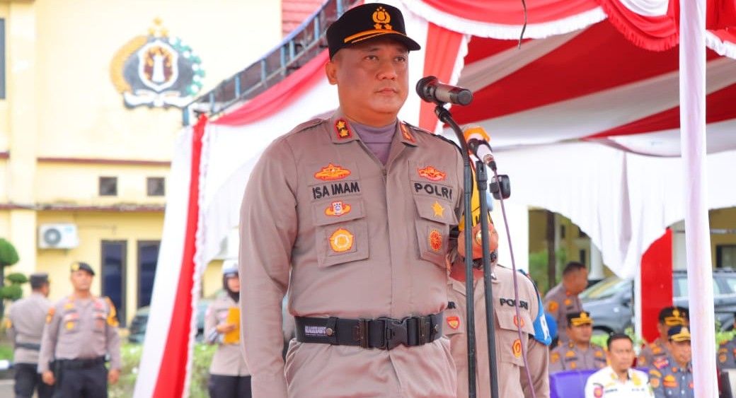 Kapolres Rokan Hilir AKBP Isa Imam Syahroni, S.I.K.,M.Si. bertindak selaku Pimpinan Upacara, AKP Hanova Siagian SH perwira upacara, Ipda Riki Panjaitan, S.H.,M.H, selaku Komandan Upacara Sementara barisan terdiri dari Barisan TNI, Barisan Personil BKO Polda Riau.