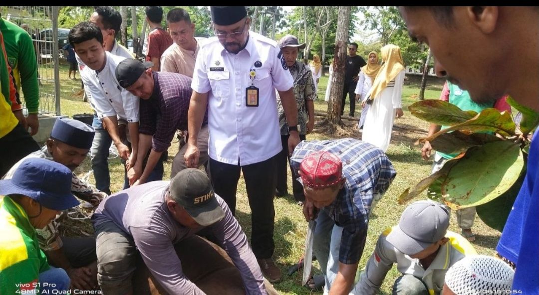 “Alhamdulillah tahun ini kita masih bisa menyembelih hewan kurban sebanyak 7 ekor yang mana sumbangan dari Bupati satu ekor dari ibuk PKK Kabupaten Satu ekor, kami sekeluarga serta dari arisan PNS, PTT, pengawas yang ada di lingkungan hidup,” helas Suwandi.