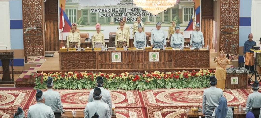 ROHIL, Tepakonline.com– Dalam rangka memperingati hari jadi Kabupaten Rokan Hilir (Rohil) yang ke 24 tahun, DPRD Rohil dan Pemerintah Kabupaten (Pemkab) menggelar rapat paripurna Istimewa DPRD Kabupaten Rohil, Rabu (4/10/2023) di kantor DPRD Rohil.