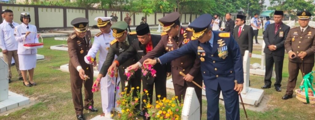 PEKANBARU, Tepakonline.com- Bertempat di Taman Makam Pahlawan Kusuma Dharma Pekanbaru, Kepala Kejaksaan Tinggi Riau Dr. Supardi dalam hal ini diwakili oleh Asisten Pidana Militer Kejaksaan Tinggi Riau Kolonel Laut (H) Faisol, S.H hadiri kegiatan Upacara Ziarah Nasional Dalam Rangka HUT TNI ke – 78 Tahun 2023. Rabu 04/10/2023 Pukul 08.00 Wib.
