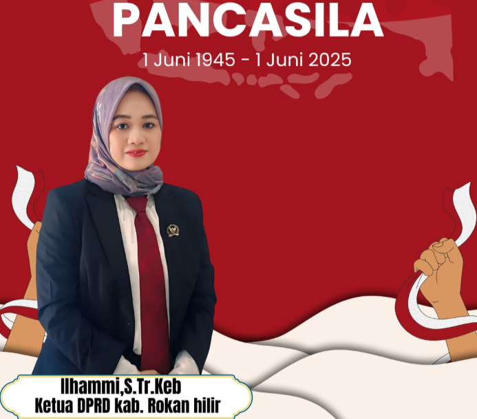 Tepakonline.com, ROHIL- Ketua DPRD Kabupaten Rokan Hilir menyampaikan ucapan selamat memperingati Hari Lahir Pancasila yang jatuh pada tanggal 1 Juni 2025. Dalam pernyataannya, Ilhammi mengajak seluruh elemen masyarakat, untuk menjadikan nilai-nilai Pancasila sebagai landasan dalam kehidupan berbangsa dan bernegara. Minggu 01/06/2025.