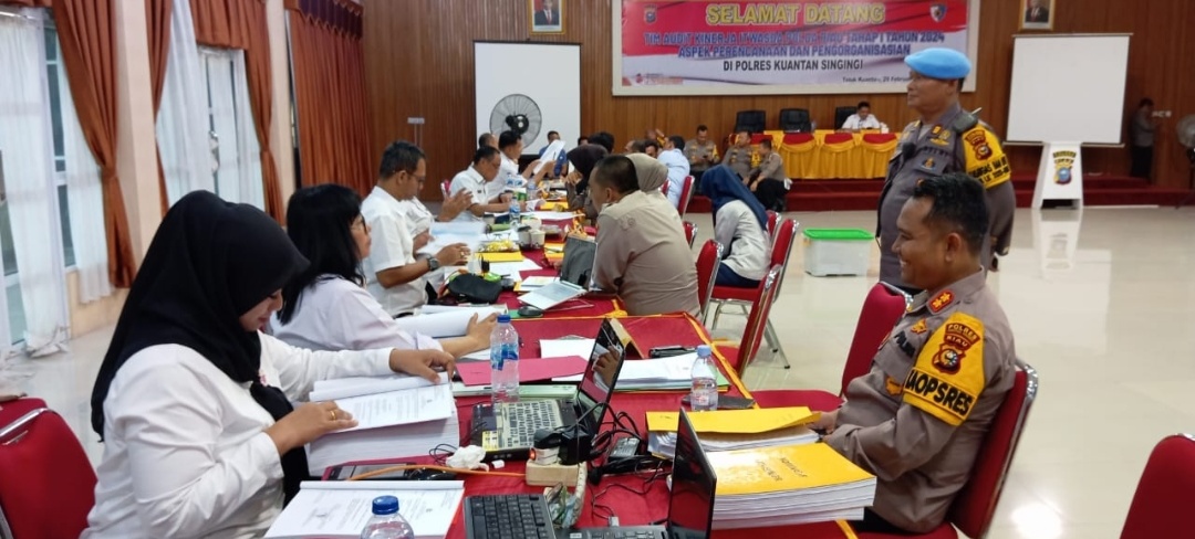 TELUKKUANTAN, Tepakonline.com- Pada hari pertama Audit Kinerja Itwasda Polda Riau Tahap I Tahun 2024, fokus utama adalah aspek Perencanaan dan Pengorganisasian di Polres Kuansing. Kegiatan dimulai Kamis (29/2/2024), Pukul 14.00 WIB di Aula Sanika Satyawada Polres Kuansing.