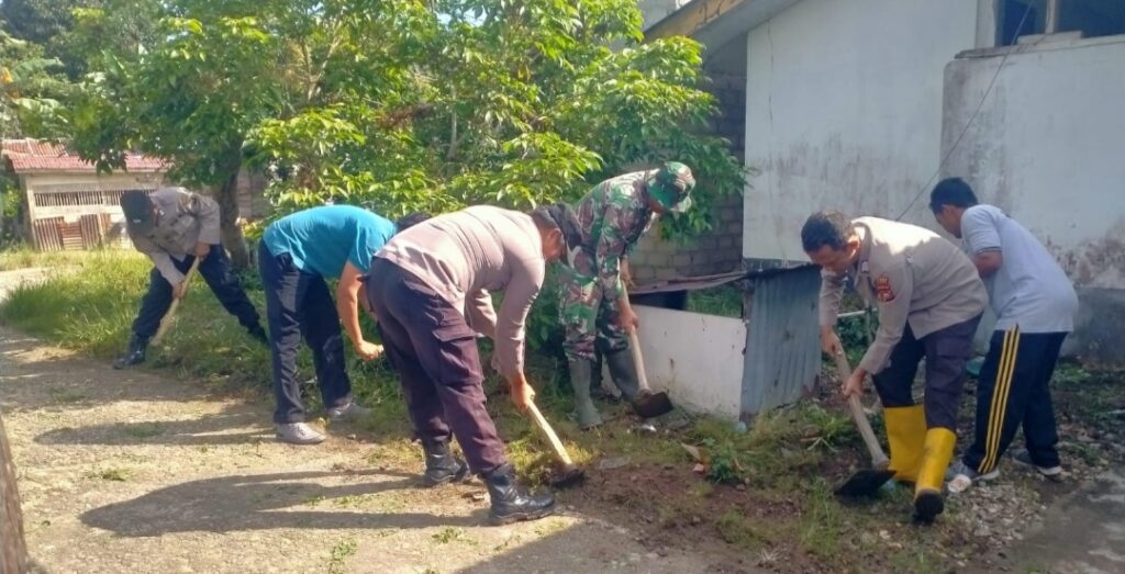 KUANSING, Tepakonline.com- Polsek Cerenti beserta anggota melaksanakan kerja bakti TNI di Mushola Khusnul khotimah Desa Kampung Baru Timur Kecamatan Cerenti, Kabupaten Kuansing Jumat (08/12/23) Pukul 08.00 WIB.
