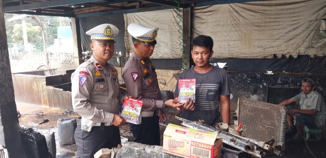 Jelang Pemilu 2024, Personil Ditlantas Polda Riau Sambangi Bengkel Radiator Sampaikan Pesan Pemilu Damai