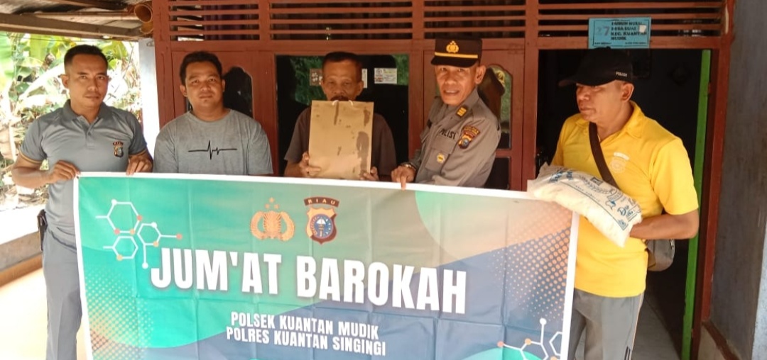 “Jum’at Barokah merupakan rutinitas Wikum Polsek Kuantan Mudik untuk berbagi sesama masyarakat yang kurang mampu dan giat ini dimulai tepatnya Pukul 10.00 Wib, selesai pada Pukul 11.00 Wib, semua bisa terwujud dari infak Personil Polsek,”ucap AKP Feri W.