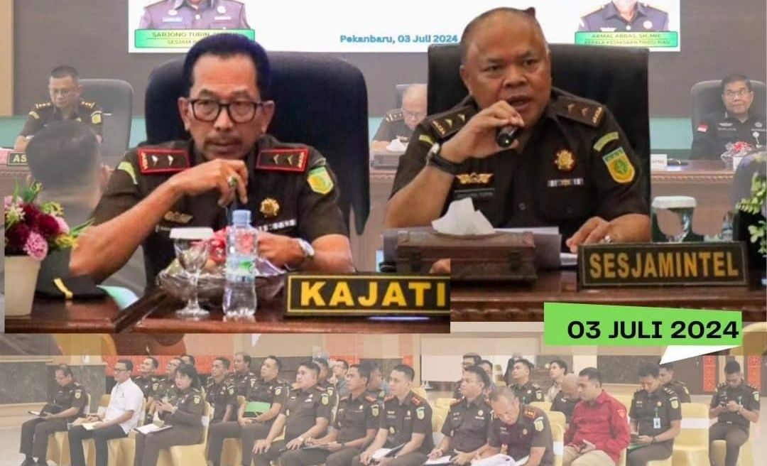 Mengikuti Pengarahan Sekretatis Jaksa Agung Muda Intelijen (SESJAMINTEL) Kejaksaan Republik Indonesia Sarjono Turin, S.H., M.H. Bertempat di Aula Sasana M. H Prasetyo Gedung Satya Adhi Wicaksana Kejaksaan Tinggi Riau Kota Pekanbaru, Rabu 03/07/2024, Pukul 15.00 Wib.
