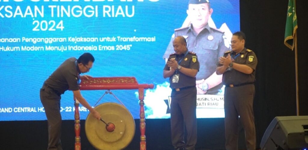 “Optimalisasi Perencanaan Penganggaran Kejaksaan Untuk Transformasi Penegakan Hukum Modern Menuju Indonesia Emas 2045”. Bertempat di Ballroom Hotel Grand Central Pekanbaru, Kamis 21/03/2024, Pukul 08.15 Wib.