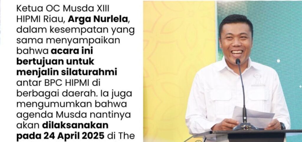 “Dari Hasil Panitia padahal hanya satu calon Ketum BPD HIPMI Riau Jadi tidak ada alasan lain SC & OC mengulur-ulur pelaksanaan Musda,” kata Satrio Rachmazan sekertaris umum HIPMI Indragiri Hulu (Inhu). Senin (21/4/2025).
