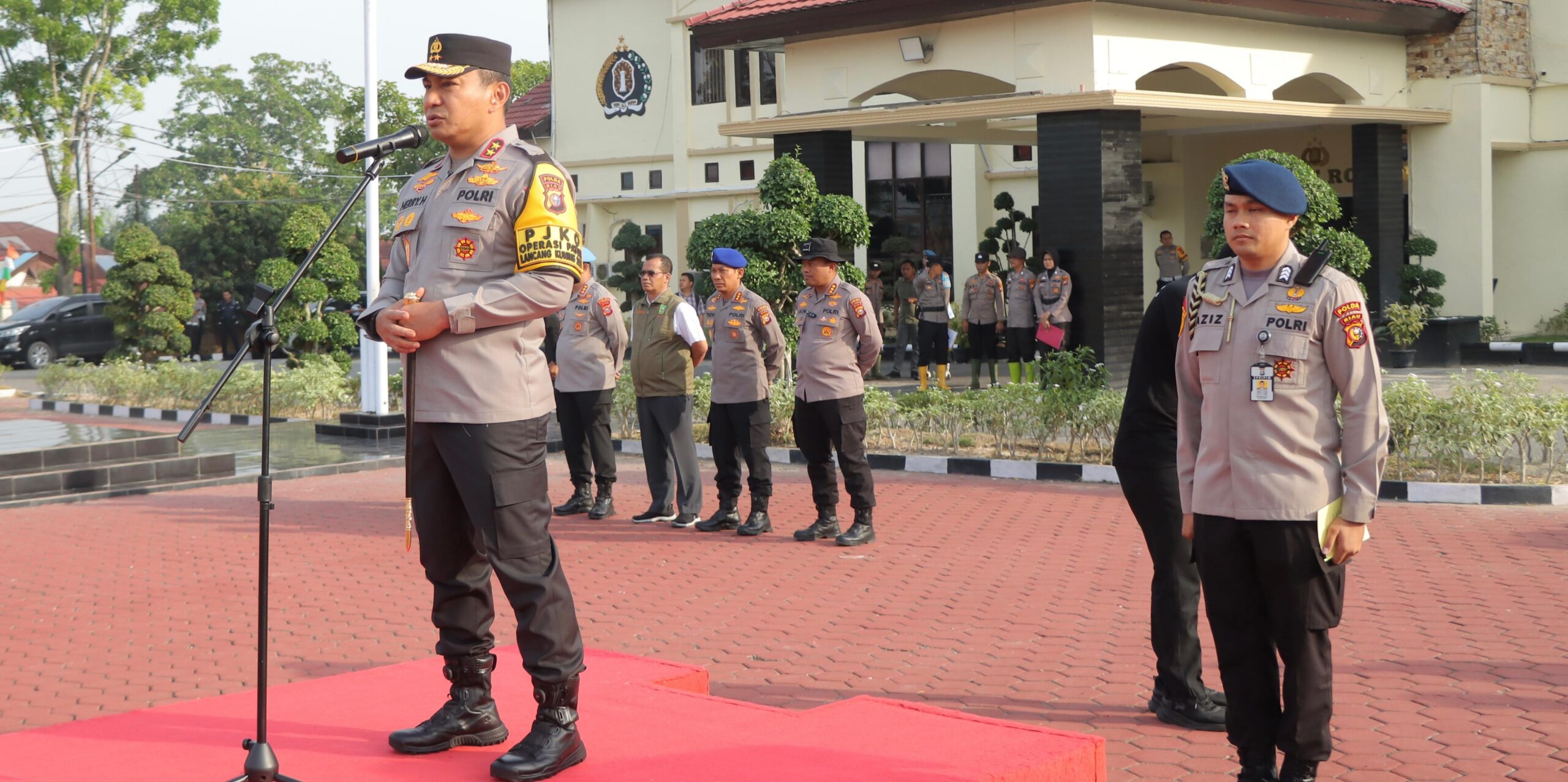 Diikuti, Karo Ops Polda Riau, Kombes Pol Ino Haryanto, S.I.K.,M.H, Kabid Propam Polda Riau, Kombes Pol Harissandi, S.I.K.Dir Krimsus Polda Riau, Kombes Pol Ade Kuncoro Ridwan, S.I.K. Dir Polair Polda Riau, Kombes Pol Eko Irianto, S.I.K. Kabid Humas Polda Riau, Kombes Pol Anom Karibianto, S.I.K. Dansat Brimobda Polda Riau, Kombes Pol I Ketut Gede Wibawa,, S.I.K.