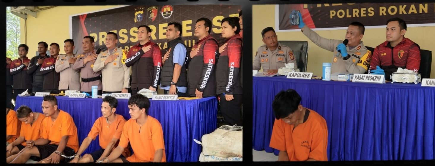 Mendampingi Kapolres, Kasat Reskrim Polres Rokan Hilir AKP I Putu Adi Juniwinata S.Tr. K. S.I.K. M.Si, Kanit Reskrim Polsek Bangko Polres Rohil Iptu Irwandy H Turnip, SH. MH. Plh Kasi Humas Polres Rohil Ipda Edi Purnomo.