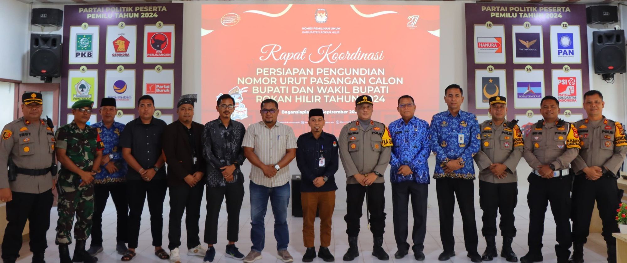 Demikian dikatakan Penanggung jawab keamanan pelaksanaan Pilkada Rohil ini saat menghadiri acara pencabutan nomor urut peserta Pilkada di Gedung Misran Rais, Ibukota Kabupaten Rohil. Senin 23 September 2024, Pukul 09: 30 WIB.