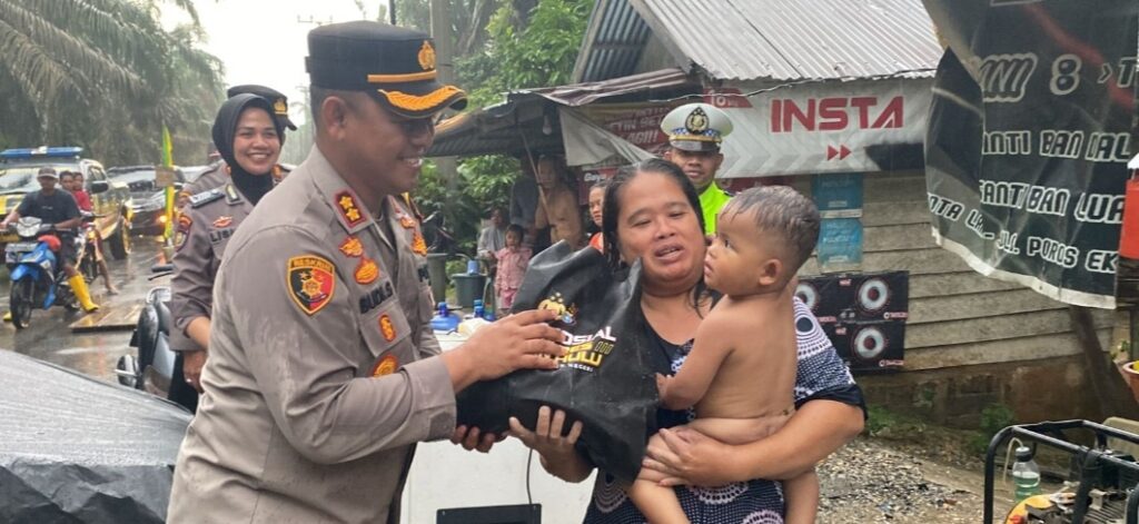 ROHUL, Tepakonline.com- Polres Rokan Hulu melaksanakan kegiatan pemberian sembako kepada warga yang terdampak banjir sekaligus memberikan pesan kepada masyarakat agar mensukseskan Pemilu damai tahun 2024