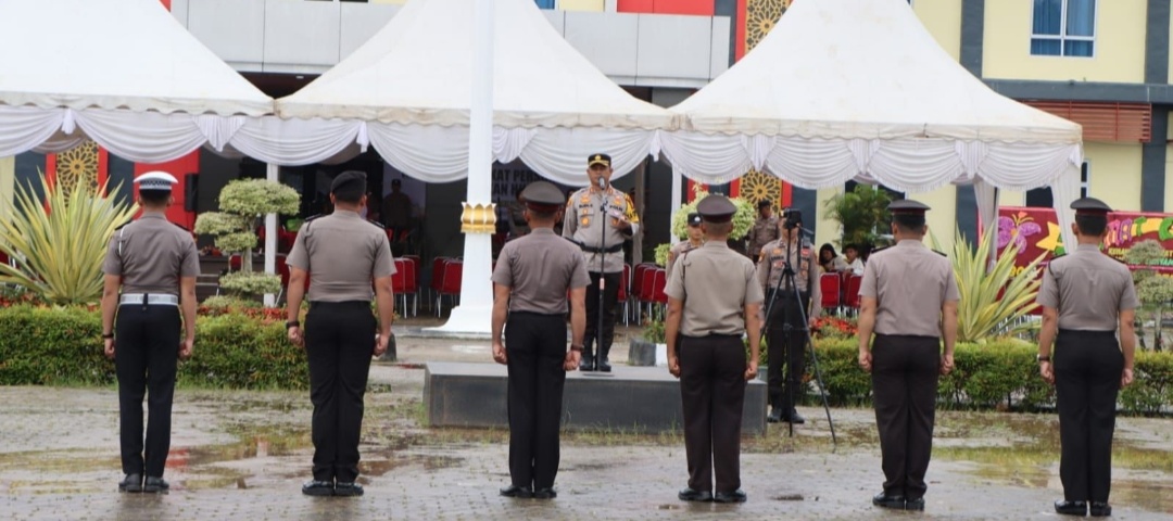 Kapolres Rohul Pimpin Upacara Kenaikan Pangkat 35 Personil