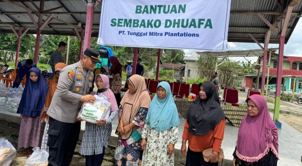 Tepakonline.com, PUJUD- Tingkatkan silahturahmi dan rasa kepedulian terhadap masyarakat kurang mampu atau kaum Dhuafa, Kapolsek Pujud AKP Boy Setiawan SAP MSi salurkan bantuan 60 warga penerima sembako melalui dana CSR PT. Tunggal Mitra Plantation bekerjasama dengan Polsek Pujud.