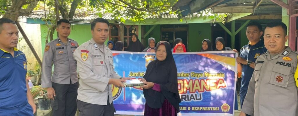 PEKANBARU, Tepakonline.com- Polda Riau melalui Satker Biro SDM (Biro Sumber Daya Manusia) kembali menggelar Jum’at Barokah yang lebih dikenal dengan nama JUMPE ROMANSA (Jumat Peduli Biro Sumber Daya Manusia) di sekitaran wilayah hukum Polda Riau.