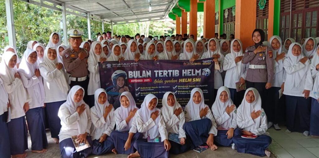 ROHIL- Kembali Satlantas Polres Rohil kembali laksanakan kegiatan Sosialisasi Tertib Berlalu Lintas dan tertib Bulan November Tertib Helm di MTS N 1 Ujungtanjung Kecamatan Tanah Putih Kabupaten Rokan Hilir, Selasa 28/11/2023, Pukul 09.00 Wib.