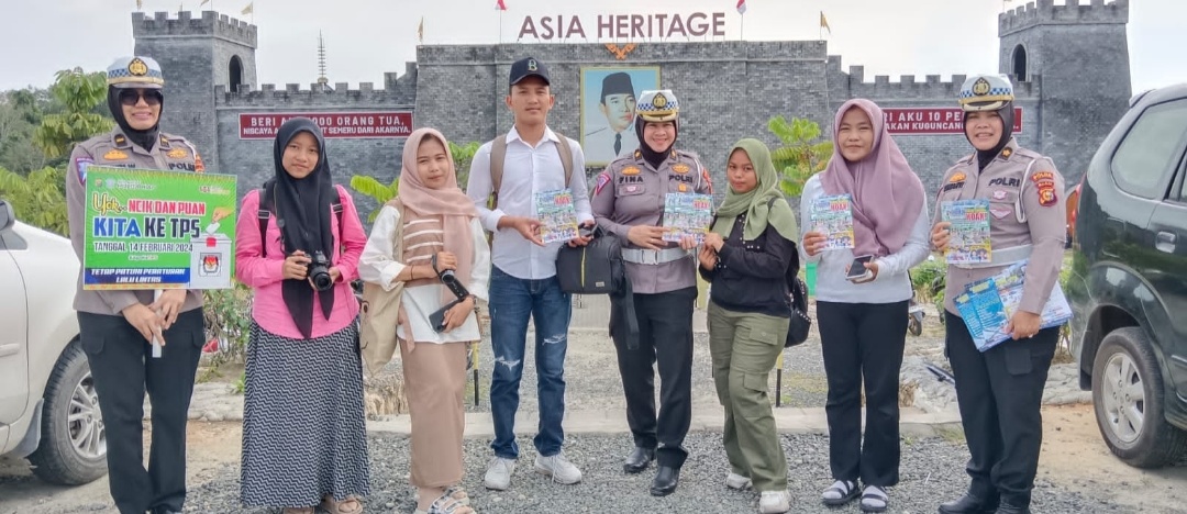 “Hari ini kami dari subditkamsel Ditlantas Polda Riau menyapa para pengunjung yang ada di area Asia Heritage tepatnya di jalan Yos Sudarso Kecamatan Rumbai Kota Pekanbaru. Kami mengajak para pengunjung untuk menggunakan hak pilihnya dengan datang ke TPS tanggal 14 februari 2024,” kata Kompol Refina.