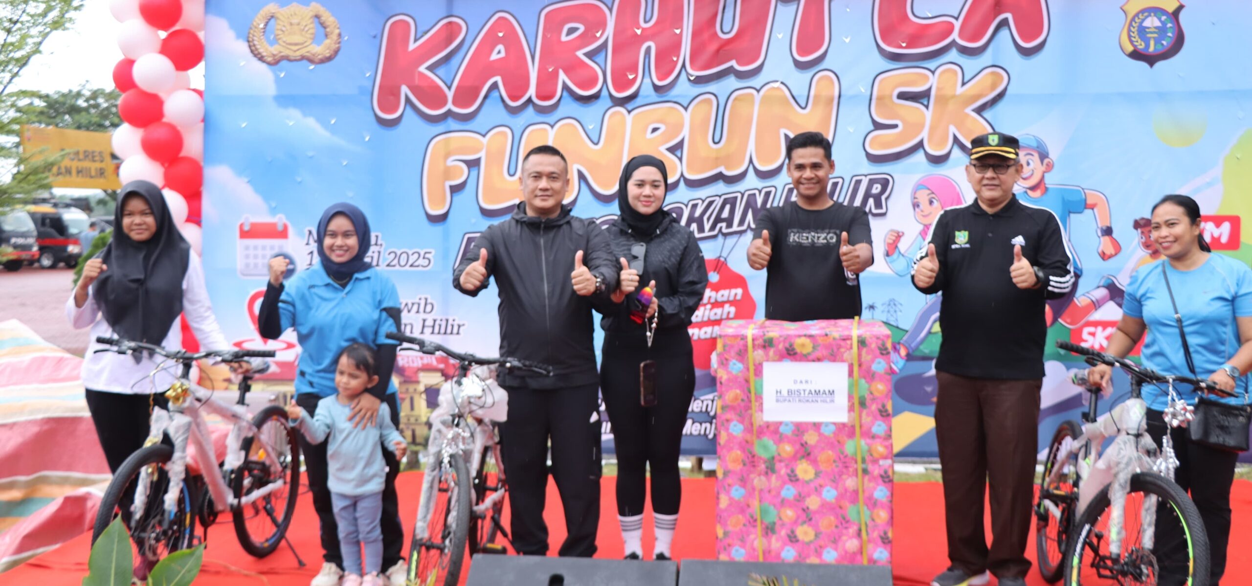 Setelah menempuh rute sejauh 5 km yang dimulai dari Mapolres – Perkantoran – Komplek IPDN – dan kembali ke Mapolres, acara dimeriahkan dengan pengundian doorprize yang menghadirkan hadiah menarik, mulai dari 2 unit kulkas, 5 unit sepeda, hingga berbagai hadiah hiburan lainnya yang disediakan oleh Polres Rokan Hilir dan para mitra.