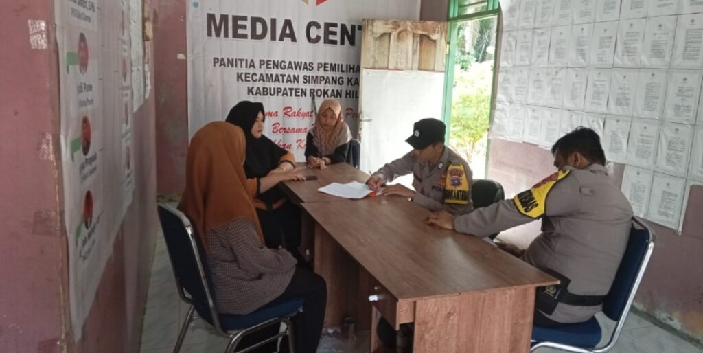 ROHIL, Tepakonline.com- Patroli Satgas Preventif OMB Lancang Kuning tahun 2023-2024, Polsek Simpang Kanan Polres Rohil menyasari Kantor Panitia Pemilihan Kecamatan ( PPK ) dan Panitia Pengawas Pemilihan Umum ( Panwaslu ). Sabtu 16 Desember 2023 Pukul 10.00 WIB.