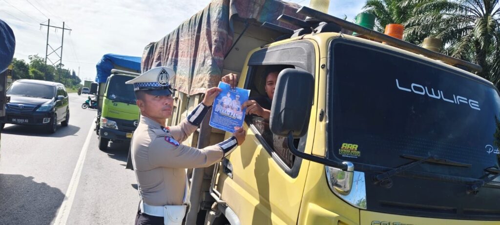 Tepakonline.com, ROHIL- Hari perdana Satlantas Polres Rohil laksanakan Operasi Patuh Lancang Kuning Tahun 2025 dengan memberikan Brosur dan Stiker Keselamatan di depan Mapolres Rohil Jalan Lintas Riau-Sumut KM 167 Kelurahan Banjar XII Kecamatan Tanah Putih, Kabupaten Rohil, Selasa 15/07/2025, Pukul 08.00 Wib.