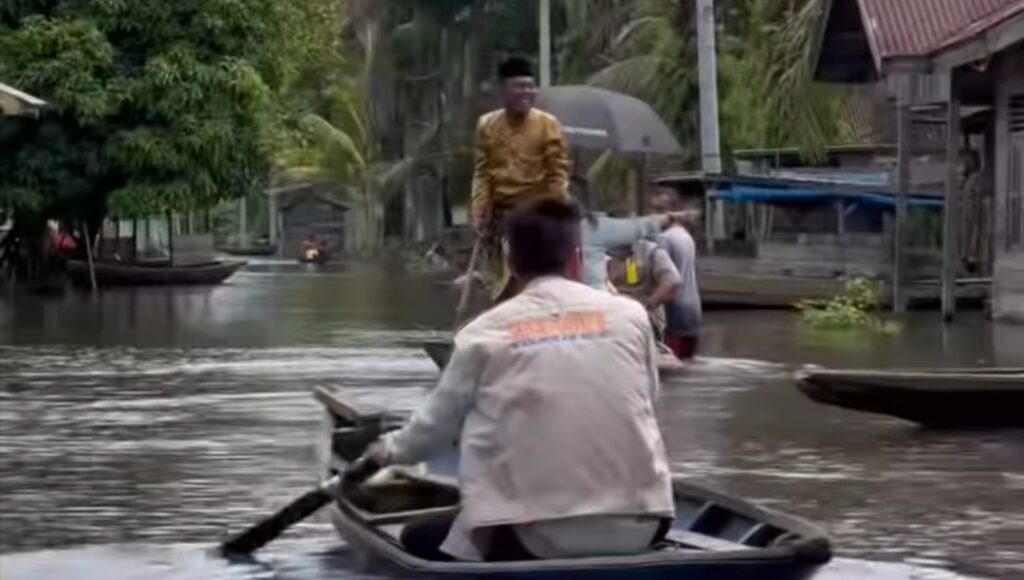 “Alhamdulillah, walaupun Desa Sekapas kebanjiran, Pak Bupati bersama rombongan langsung meninjau warga dan rumah yang terkena banjir dengan menaiki Sampan,”terang Sarkoni.