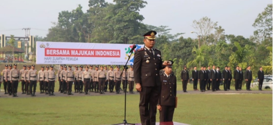 Bertindak sebagai Inspektur Upacara, Kapolres Kuansing, AKBP Pangucap Priyo Soegito, S.I.K, M.H., menyampaikan amanat dengan mengucapkan “Segala Puji kita panjatkan ke hadirat Allah SWT, Tuhan Yang Maha Esa, atas Rahmat dan karunia-Nya, pada hari in 28 Oktober 2023.