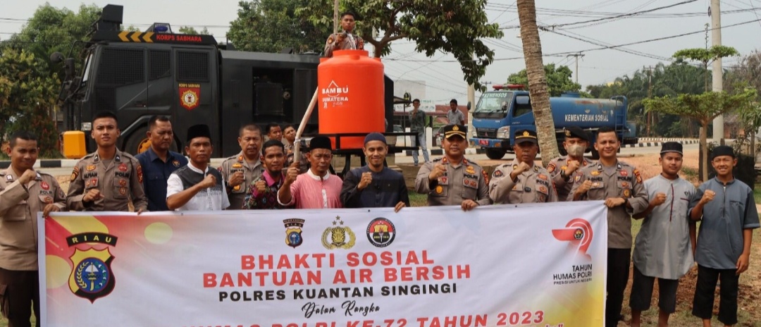 Polres Kuansing Salurkan Air Bersih Dalam Hut Humas Polri ke 72