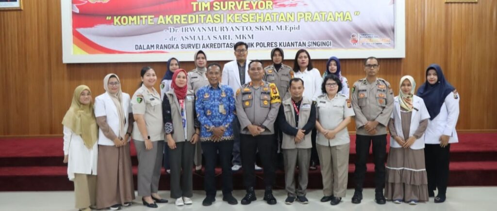 TELUK KUANTAN, Tepakonline.com- Dalam upaya meningkatkan standar pelayanan kesehatan di wilayah Kabupaten Kuansing, Polres Kuansing terima kunjungan Tim Surveyor “Komite Akreditasi Kesehatan Pratama”.