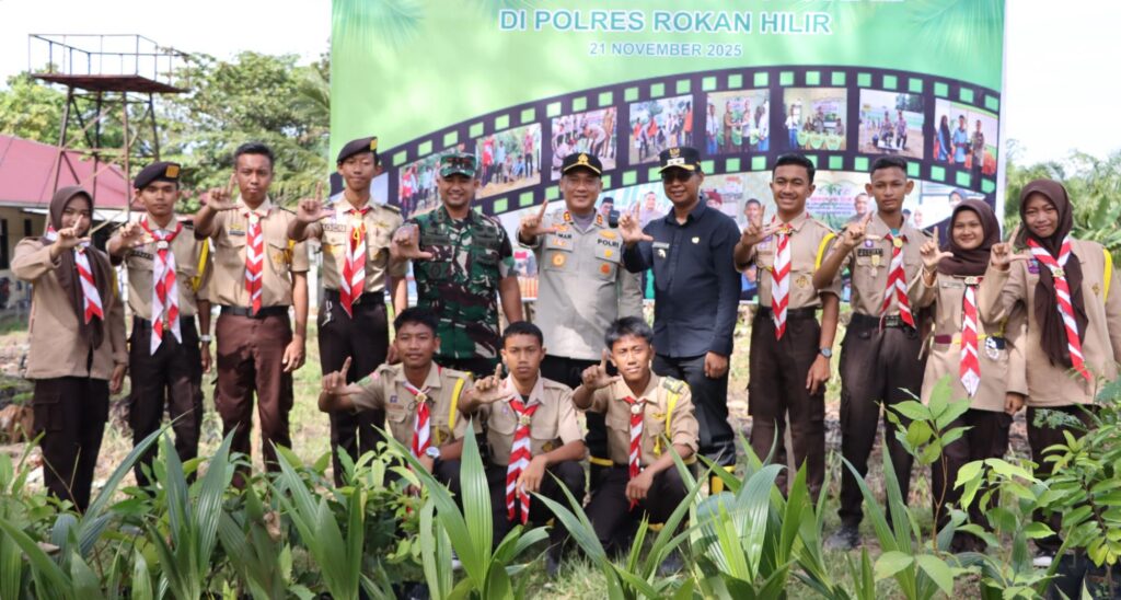 Tepakonline.com, ROHIL- Polres Rokan Hilir melaksanakan Upacara Peringatan Hari Pohon Nasional sekaligus kegiatan Penanaman Pohon Serentak dalam rangka mendukung Program Kapolda Riau “Gerakan Menanam 21.000 Pohon”, Jumat (21/11/2025) Pukul 08.30 WIB di Lapangan Mako Polres Rohil.