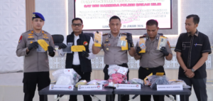 Polisi memaparkan keberhasilan pengungkapan narkotika dengan barang bukti sabu seberat 3.989,72 Gram (3,98 kilogram), ekstasi sebanyak 3.495 butir, serta happy five (HS) sebanyak 10.000 butir.