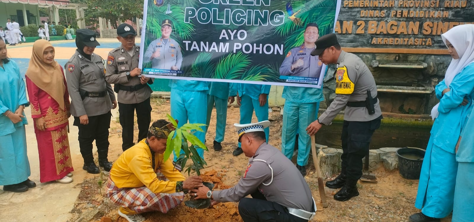 Selanjutnya, kegiatan dilanjutkan dengan penanaman pohon sebagai bagian dari implementasi program Green Policing yang menjadi kebijakan strategis Kapolda Riau.