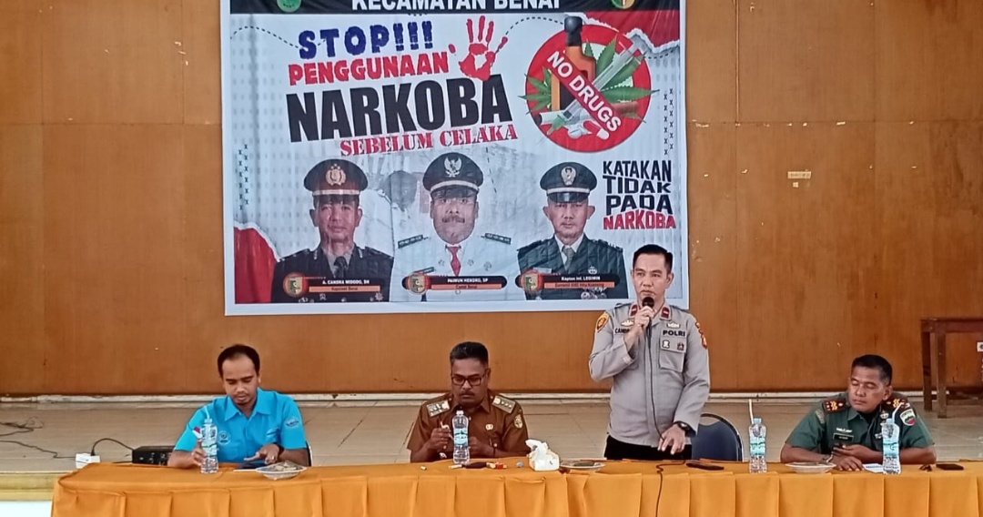 KUANSING, Tepakonline.com– Polsek Benai melaksanakan kegiatan sosialisasi pencegahan penyalahgunaan dan peredaran narkoba terhadap generasi penerus bangsa oleh Kepala BNN Kabupaten Kuansing bertempat di aula kantor Camat Benai Kecamatan Benai Kabupaten Kuansing, Selasa (5/12/2023) pukul 08.00 WIB.