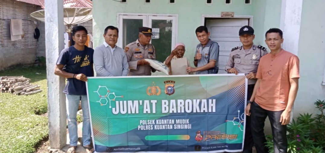 TELUK KUANTAN, Tepakonline.com- Kuantan Mudik, 22 September 2023 – Personel Polsek Kuantan Mudik Kabupaten Kuantan Singingi, Riau, melaksanakan kegiatan Jumat Barokah dengan memberikan bantuan berupa sembako masyarakat kepada kurang mampu di wilayah hukumnya, Jumat (22/9/2023).