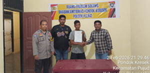 Turu hadir dalam kegiatan tersebut yaitu, Kapolsek Pujud AKP Boy Setiawan SAP MSi, Bhabinkamtibmas pondok keresek Aipda Subandrio, Aparat Desa Pondok Keresek dan pihak kebun asisten 3, pelaku dan keluarga pelaku. (Rls/Red).