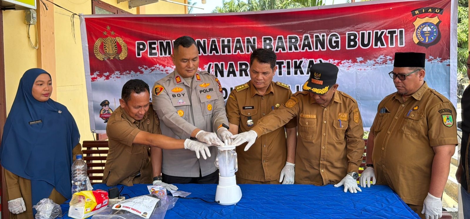 Kegiata pemusnahan dengan cara barang bukti narkotika jenis sabu dimasukkan kedalam Blender dan dicampur dengan air kemudian dicampur bubuk detergen lalu di lakukan penggilingan menggunakan Blender hingga halus,” ujar Kapolsek.